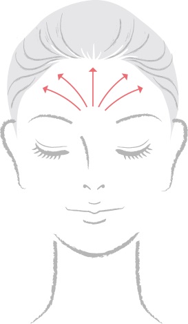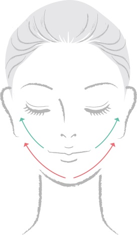 Применение: Нанесите средство спонжем, как показано на схеме и видео, прижимая и слегка подтягивая вверх и таким же образом двигаемся от центра лица к периферии, так же слегка подтягивая кожу вверх.