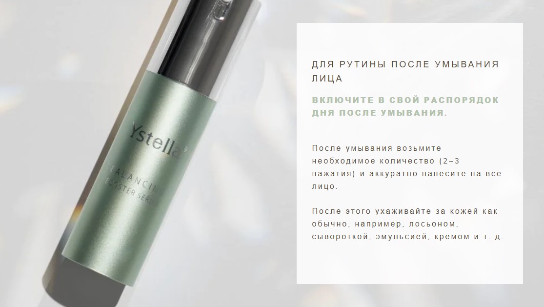 Балансирующая сыворотка-бустер Ystella – это не просто еще одно средство для ухода за кожей, это продуманный компонент, который дополняет и усиливает действие вашего обычного ухода, помогая коже оставаться упругой, увлажненной и здоровой.