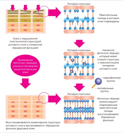 - Продукт ферментации натурального комплекса из оливкового масла, глицерина и соевого белка дрожжеподобными бактериями Pseudozyma tsukubaensis рода Streptomyces, которыe были выделены в префектуре Ибараки (Япония) представляет собой фитоскин барьер и имеет структуру, аналогичную церамидам (структурным межклеточным липидам рогового слоя).