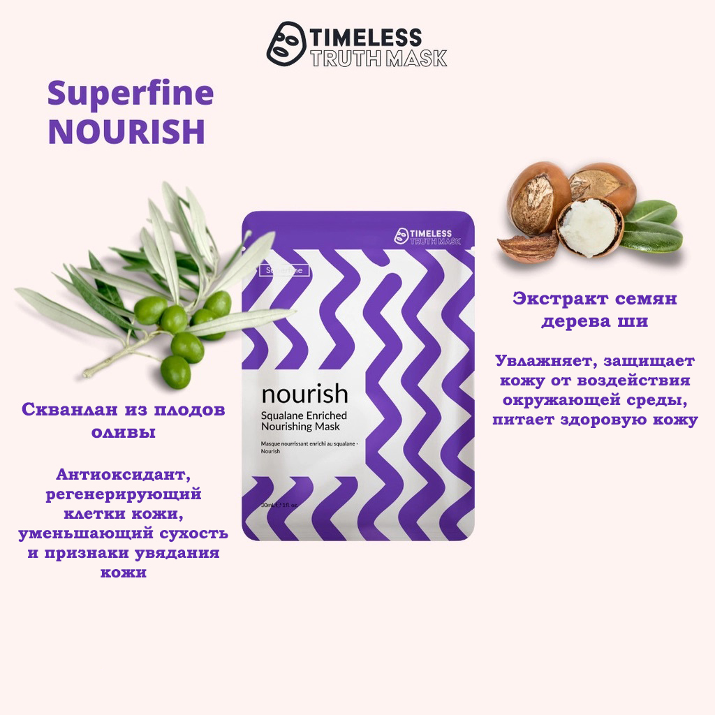 Маска для лица деликатное увлажнение и питание на основе сквалана Nourish Squalane Enriched Nourishing Mask от Timeless Truth Mask - это идеальное решение для тех, кто хочет поддерживать здоровье и молодость своей кожи. Она обеспечивает глубокое увлажнение, питание и защиту, делая кожу сияющей, упругой и здоровой.