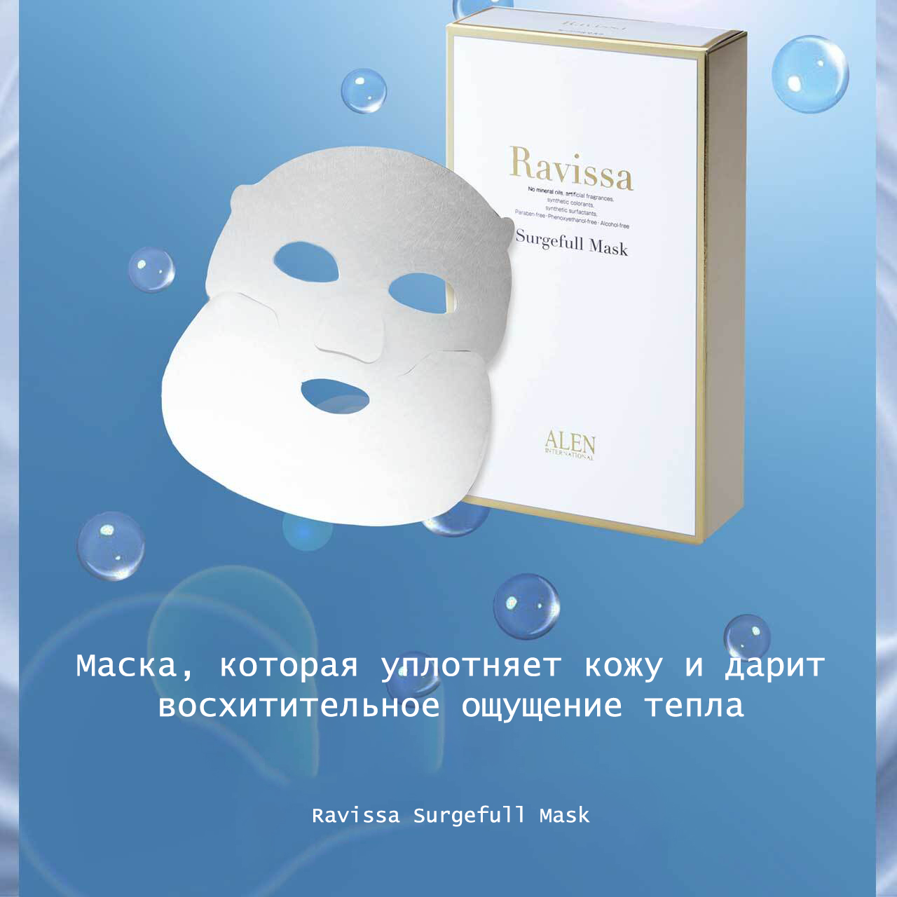 Ravissa Surgefull Mask не содержит силиконов, консервантов, спирта и минеральных масел, что делает её безопасной и комфортной для использования.
