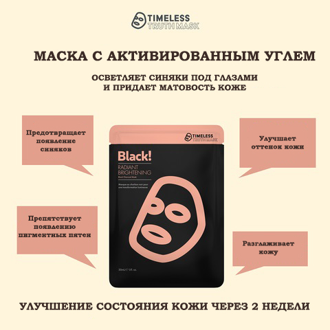 Маска с эффектом отдохнувшего сияющего лица на основе активированного угля Timeless Truth Radiant Transformation Black Charcoal Mask (Chinese version)