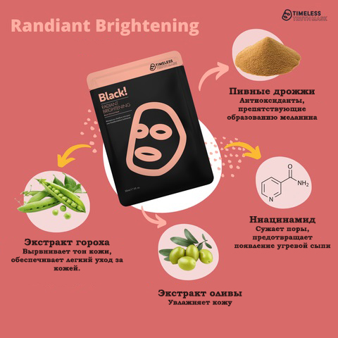 Кроме того, маска содержит запатентованный ингредиент Actiwhite TM, разработанный специально для азиатской кожи, который помогает уменьшить гиперпигментацию и осветлить общий тон кожи, а также ультраотбеливающий комплекс Dermawhite, содержащий феруловую кислоту и экстракт листьев вальтерии индийской, улучшающий регенерацию кожи и выравнивающий цвет лица.