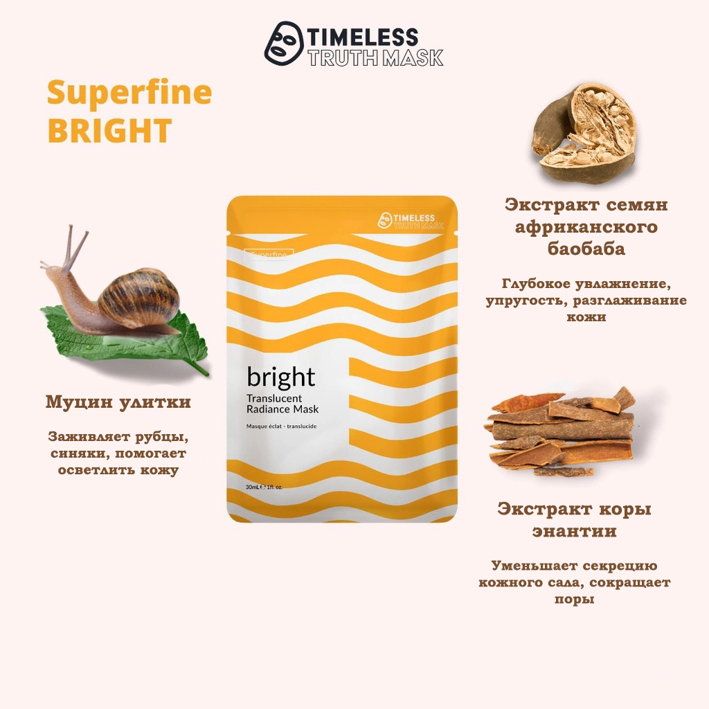 Маска с улиточным муцином, возрождающая кожу Timeless Truth Bright Translucent Radiance Superfine Mask