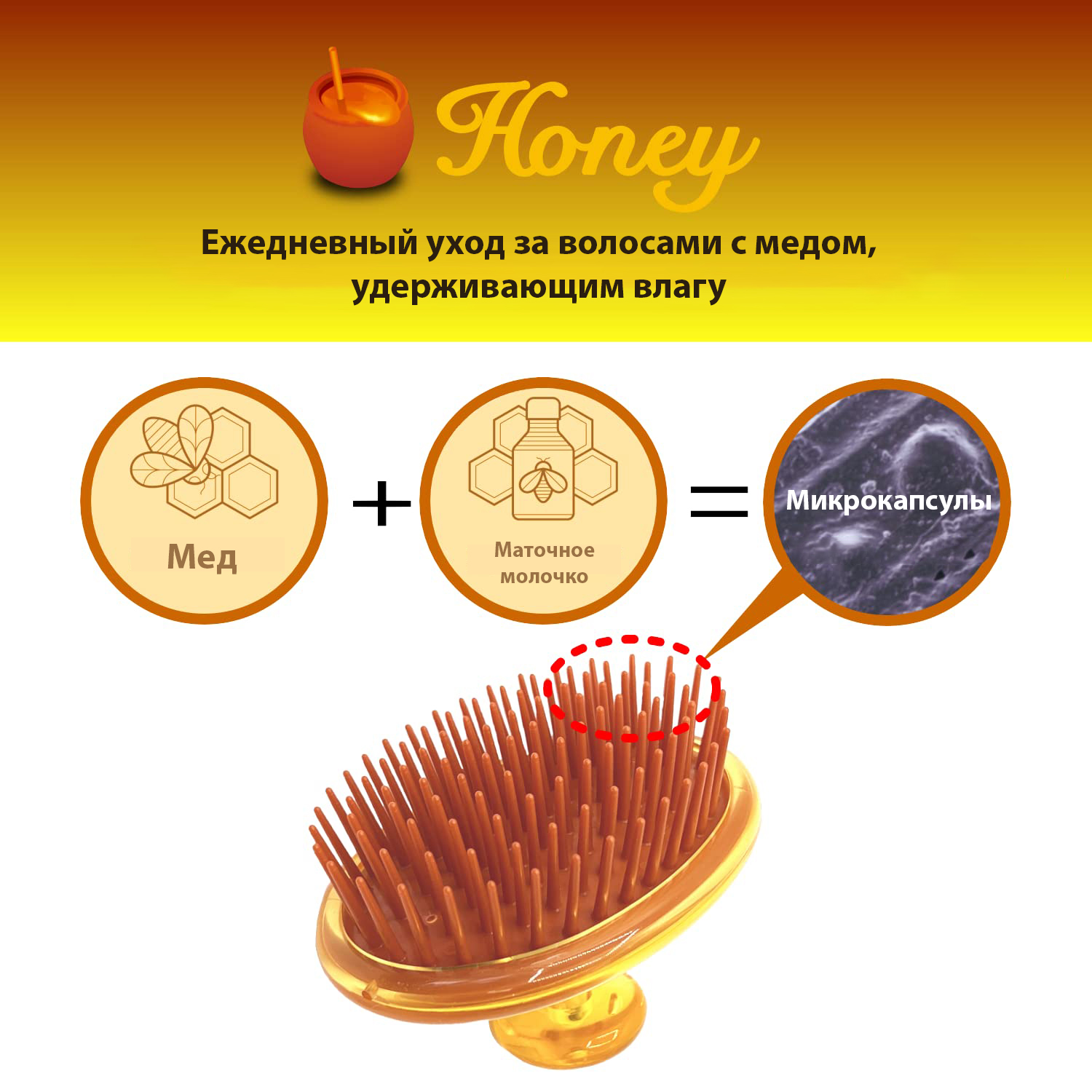 - Используйте силу меда и пчелиного маточного молочка: Наш массажер насыщен натуральными полезными веществами меда и пчелиного маточного молочка, которые известны своими увлажняющими свойствами и придают волосам неотразимую гладкость, мягкость и сияние.