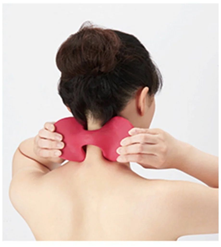 Зона шеи и плеч. Разместите массажер, как показано на рисунке и надавите на 4 точки. Можно слегка перемещать массажер, находя комфортное для вас положение.