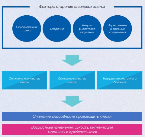 Экстракты культуры стволовых клеток яблока домашнего, экстракты ромашки аптечной, цветов гвоздичного дерева, полыни капиллярной, плодов родомирта, кожуры мандарина и мандарина благородного.
