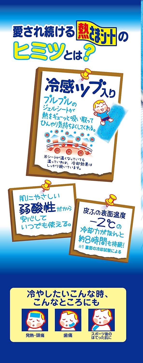 Пока пластырь остается влажным, даже если он теплый, эффект охлаждения продолжается. В пластыре используется гель с водорастворимым полимером, измельченные «холодные капсулы», которые мягко воздействует на кожу. Теперь вам нет необходимости сидеть ночами возле вашего малыша и через каждые 5 минут обтирать его влажным полотенцем во время простуды с высокой температурой. При применении пластыря ваш малыш сможет хорошо спать ночью, а его жар постепенно будет исчезать.